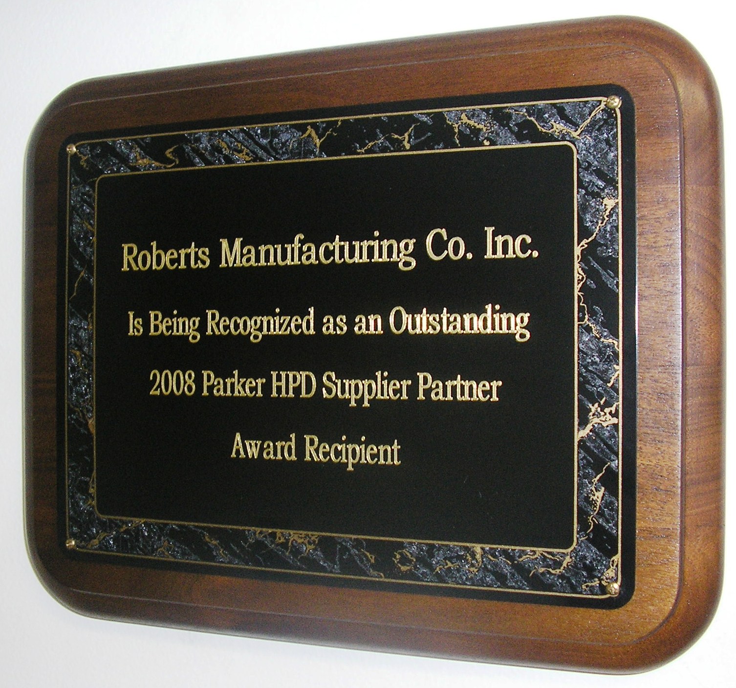 Roberts Manufacturing Co. Inc. Receives Outstanding 2008 Parker HPD Supplier Award